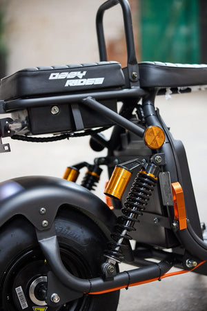 Het verschil tussen onze scooters en andere elektrische scooters is ook het gewicht, terwijl de meeste scooter rond de 120KG wegen, wegen Ozzy Rides rond de 60KG, waardoor het bv heel gemakkelijk is om dit in een mobilhome te transporteren.